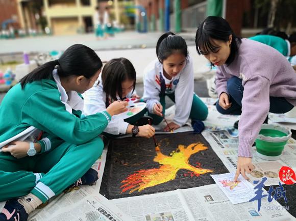初一5班王子墨同学表示,画井盖的过程非常难忘。“刚开始我们找不到好的比例把凤凰画到井盖上,经过老师的指点,一下子开了窍,我们还给凤凰的羽毛做了渐变色处理。”(更多新闻资讯,请关注羊城派 pai.ycwb.com)