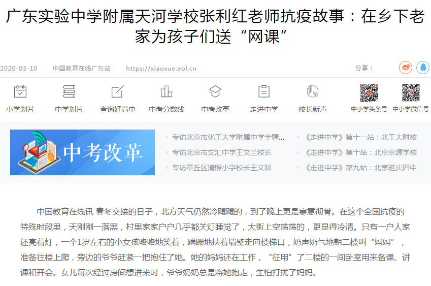 在这个特殊寒假,广东实验中学附属天河学校初一年级数学老师兼年级级长张利红老师,就这样坚守在乡下老家,默默地坚持工作和生活。