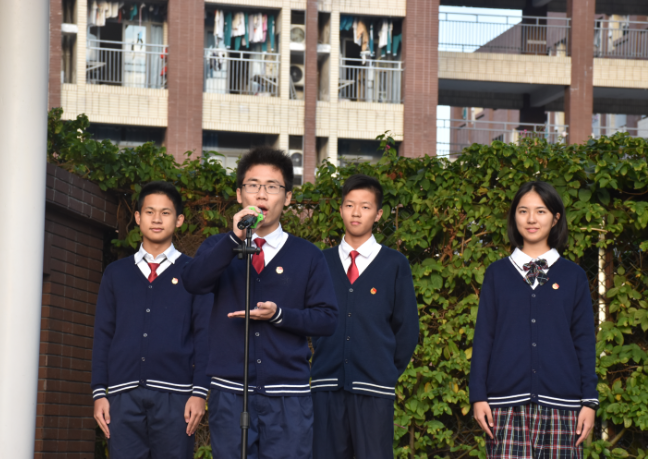 11月25日清晨,在省实附中新学期第13周晨会上,五星红旗高高飘扬,学校第十五届新团委、学生会全体成员集体登台亮相并在旗下发表就职宣言,誓要积极进取地学习,认真负责地工作, 为了省附更美好的明天而努力奋斗。随后,第十四届校团委、校学生会集体成员登台接受大家对他们一年来辛苦工作的感谢,并接受了常务副校长黄冬玲和党总支书记兼副校长钟民颁发的荣誉证书。