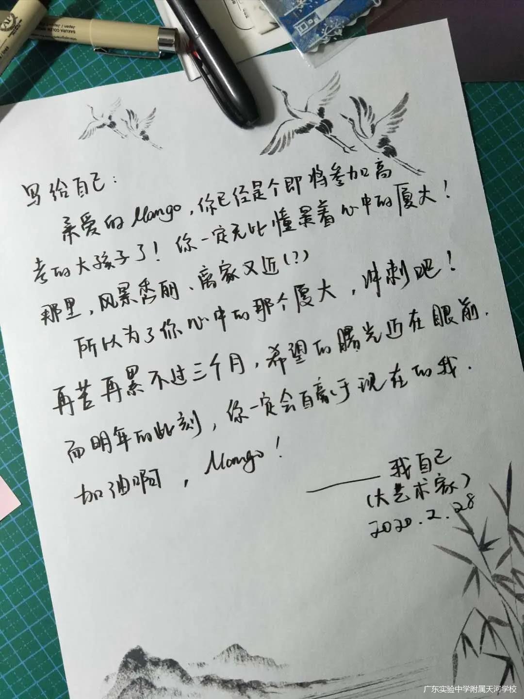 高三级老师们深情寄语,与学子分享人生的感悟。刘思莹老师说:“无愧的人生才是最美,面对疫情,面对特殊的备考,希望大家不忘初心、自律自强,拼搏百日,无愧明天。”张雯老师认为:“特殊时期,你更自律自强,扎实去拼搏,一定会收获最丰硕的果实。愿与大家一起扬鞭策马,鏖战百日闯雄关。” 陈爽老师憧憬:“百日之距,前方就是璀璨星火。希望同学们以必胜的信心、顽强的意志、高度的自律奋战百日,拼搏百日。” 张婉老师告诫:“别说梦想遥不可及,你所有的好运,都是你过去的积累。厉兵秣马,再战百日,学子们加油。” 樊洁贤老师畅想:“三年苦读磨一剑,气定神闲战犹酣。势如破竹捣黄龙,千帆竞发齐凯旋。” 雷伟恩老师言简义赅 :“无惧困难,弯道超车。”
