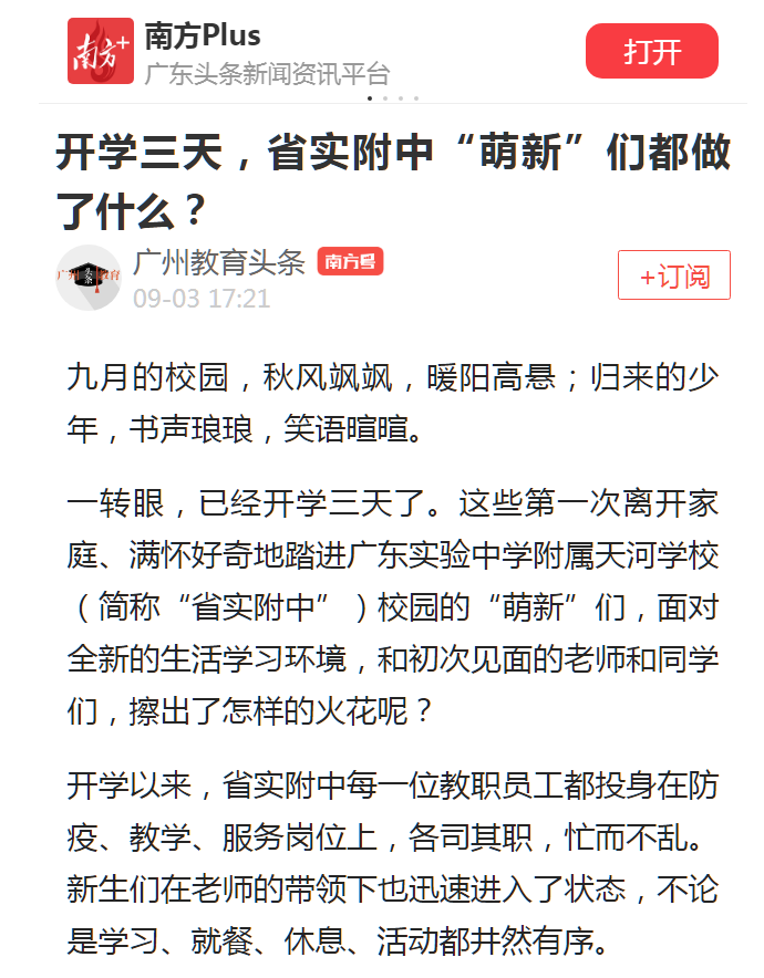 一转眼,已经开学三天了。这些第一次离开家庭、满怀好奇地踏进广东实验中学附属天河学校(简称“省实附中”)校园的“萌新”们,面对全新的生活学习环境,和初次见面的老师和同学们,擦出了怎样的火花呢?
