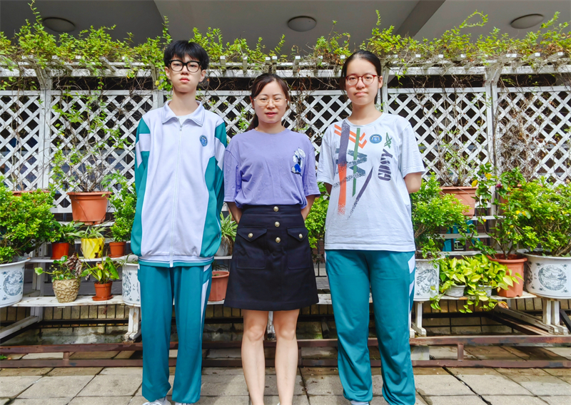 市赛三等奖获得者郑凯丹(左)、蔡缘缘(右)和指导老师冯丽霞(中)