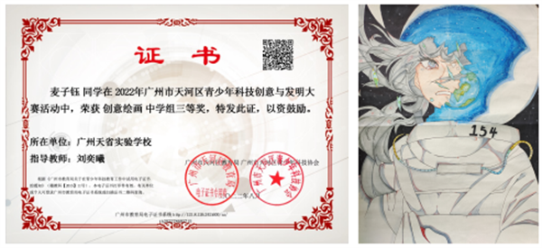 与此同时,在2022年广州市天河区青少年科技创意与发明大赛中,我校在创意绘画项目荣获一等奖1项,二等奖1项,三等奖2项。