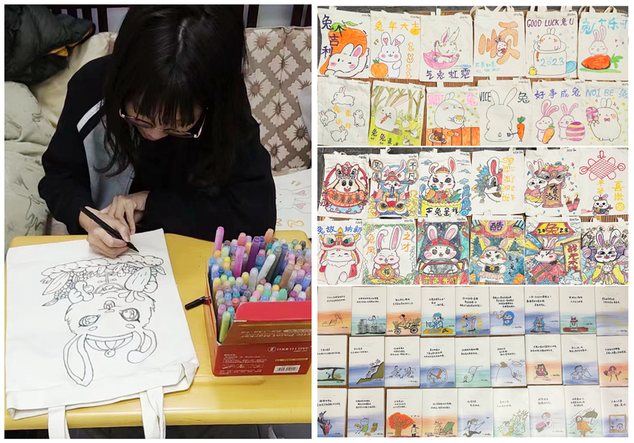 为了让学生在一个充满文化气息、充满爱心氛围、充满生长力量的班级文化环境中专心学习、健康快乐成长,每位班主任老师都在开学前精心布置班级氛围,为孩子们准备特别的开学礼物,拉近师生距离,增强班级凝聚力。如杨艳婷老师巧思手绘的兔年帆布包,寓意满载祝福与知识;张凯旋、邹丽华老师创意设计的兔年刮刮乐,寓意“刮”出鸿运,前“兔”无量;凤朝阳、庞明霞老师用心准备的文具用品,寓意好好学习,奋发向上。整齐干净的桌椅地面,温馨有爱的布置与礼物,每一处都渗透着老师们对孩子们的期待与美好祝愿。